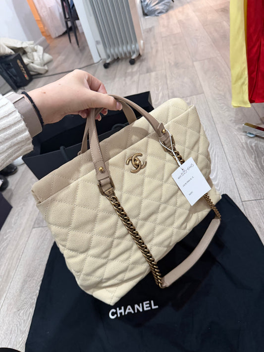 Pre-owned Cream Chanel Handbag, shoulder and handle 14 by 10inch by 7inch