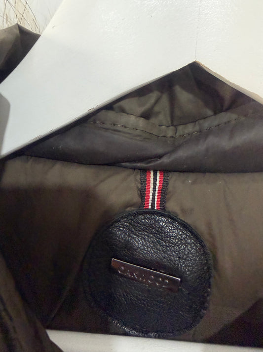 Black Racoon Fur Hood Oakwood Leather Jacket, Size XL