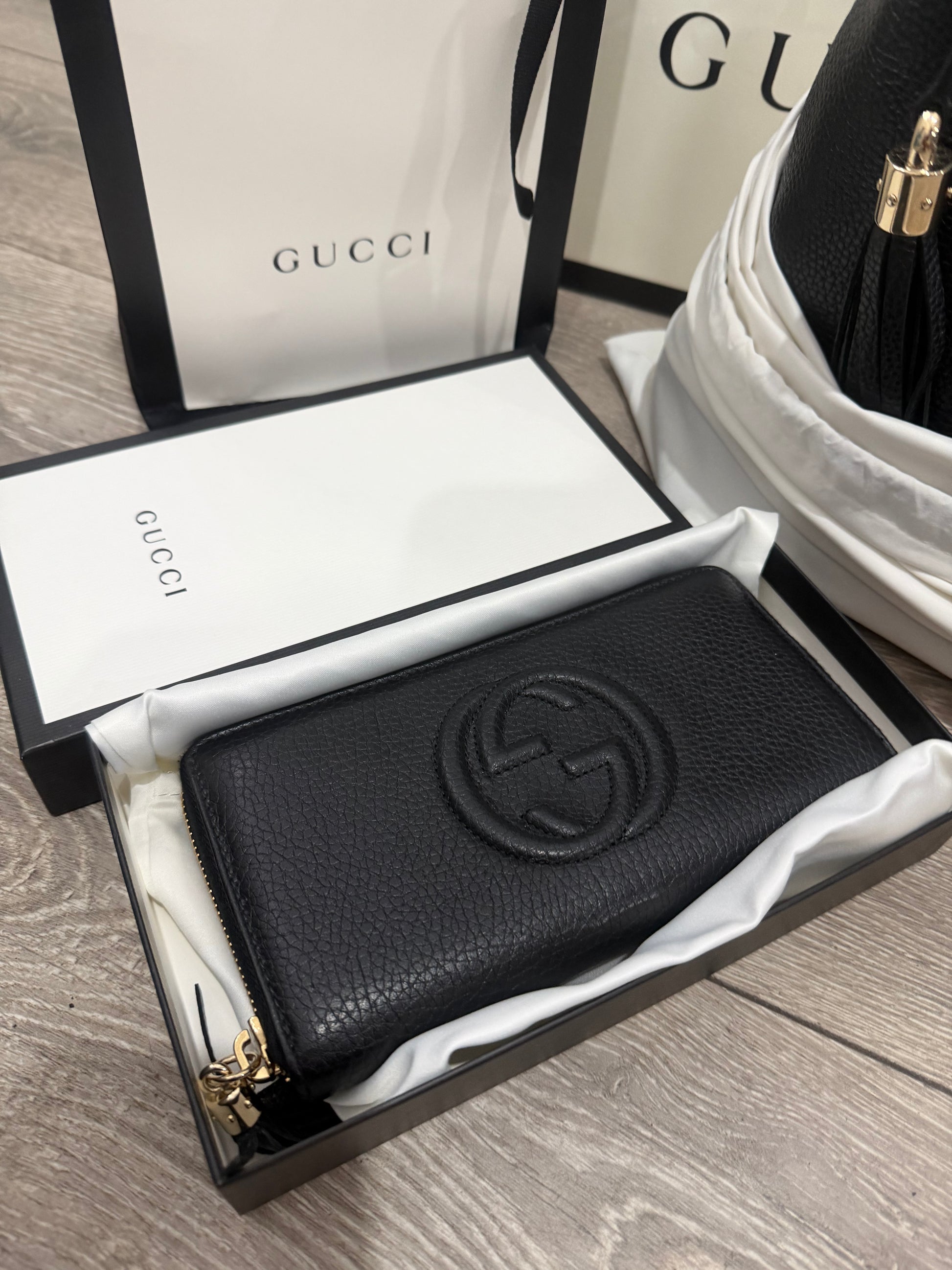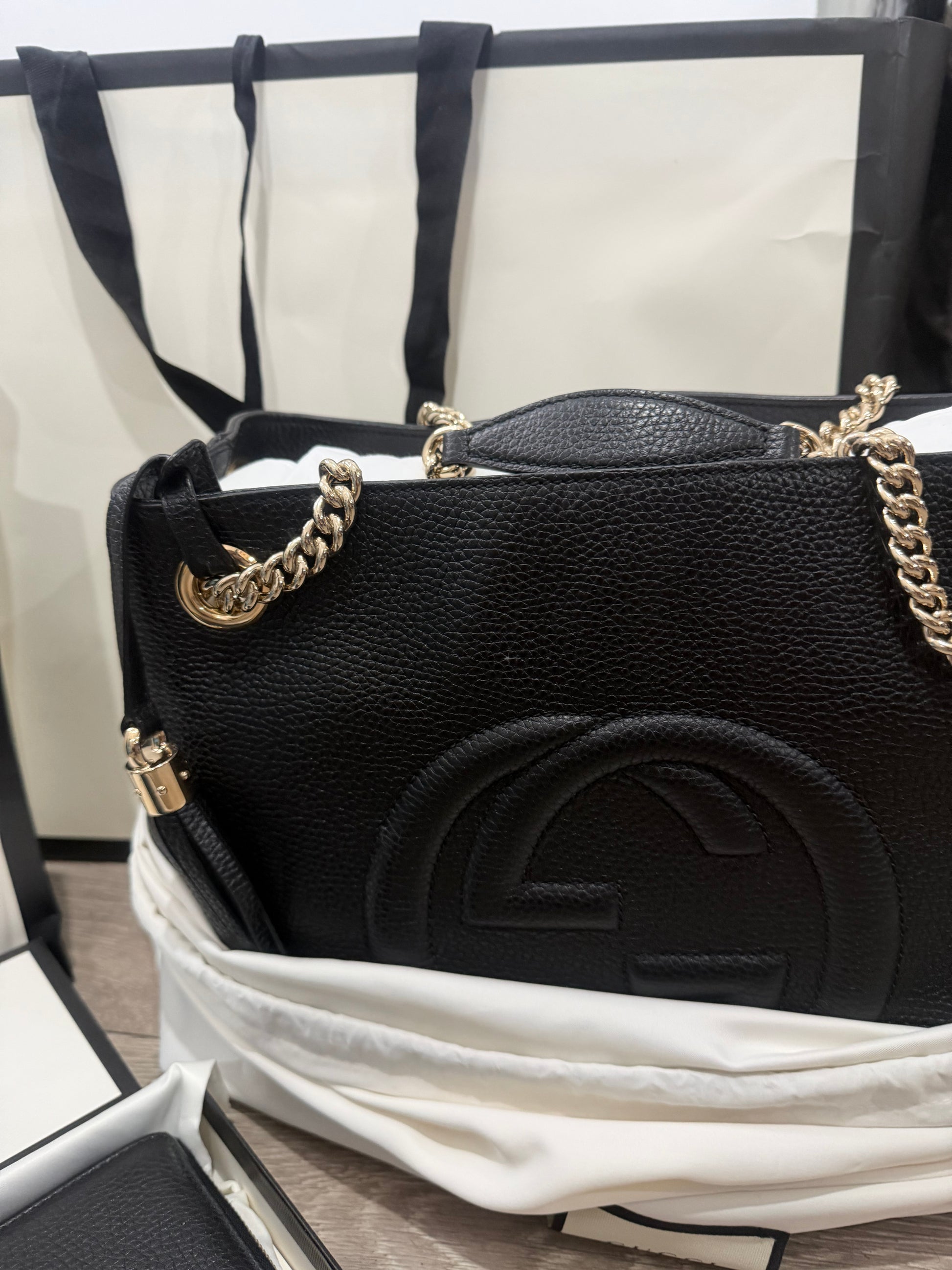 Black Gold Hardware Gucci Soho Chain Leather Bag, with Purse (Set)