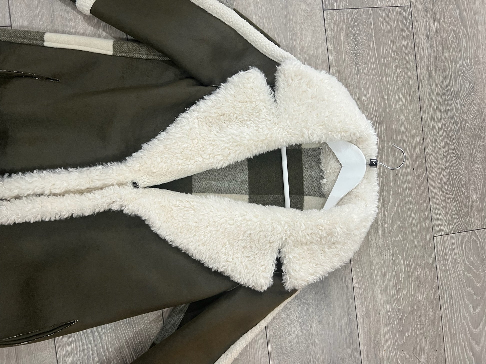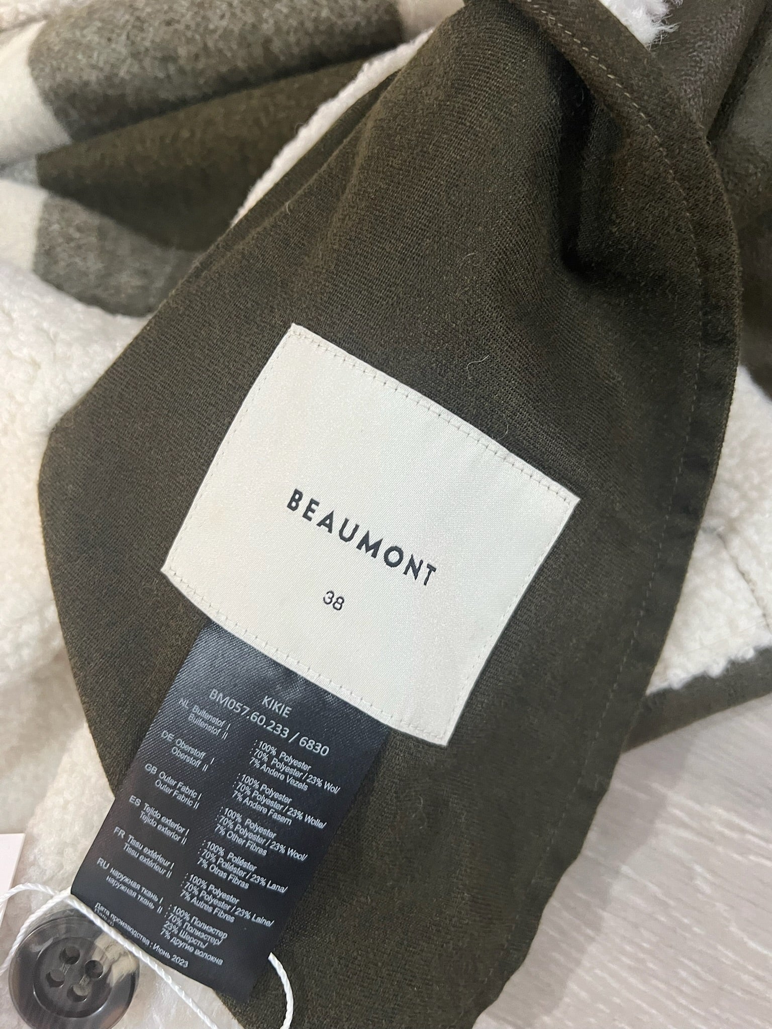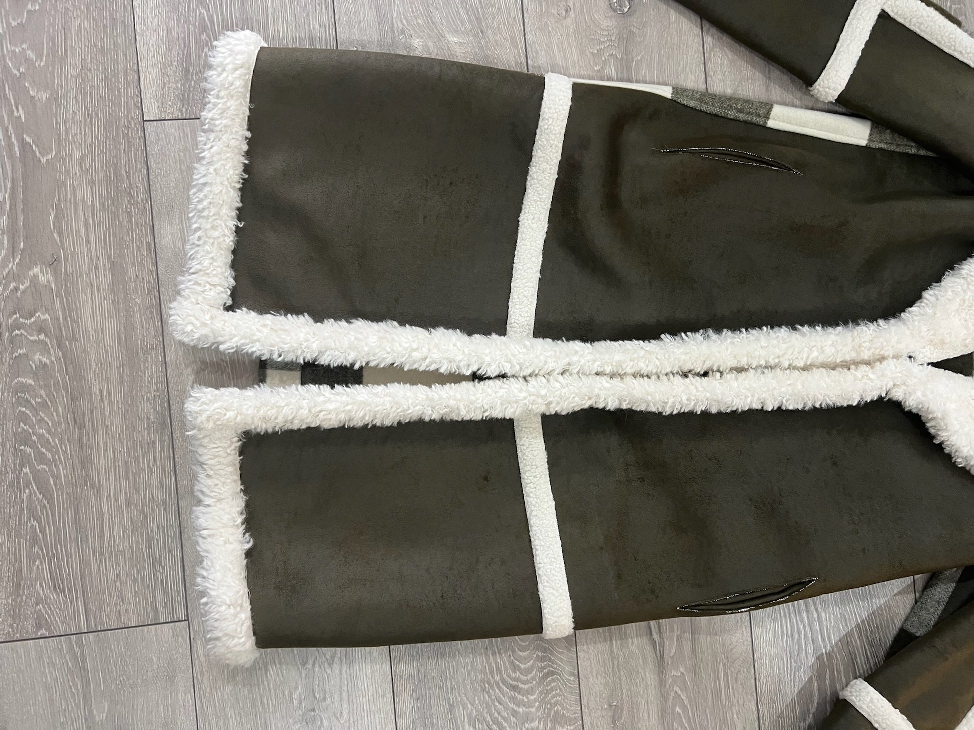 Pre-owned reversible cream and gree Beaumont Long jacket, Size 10
