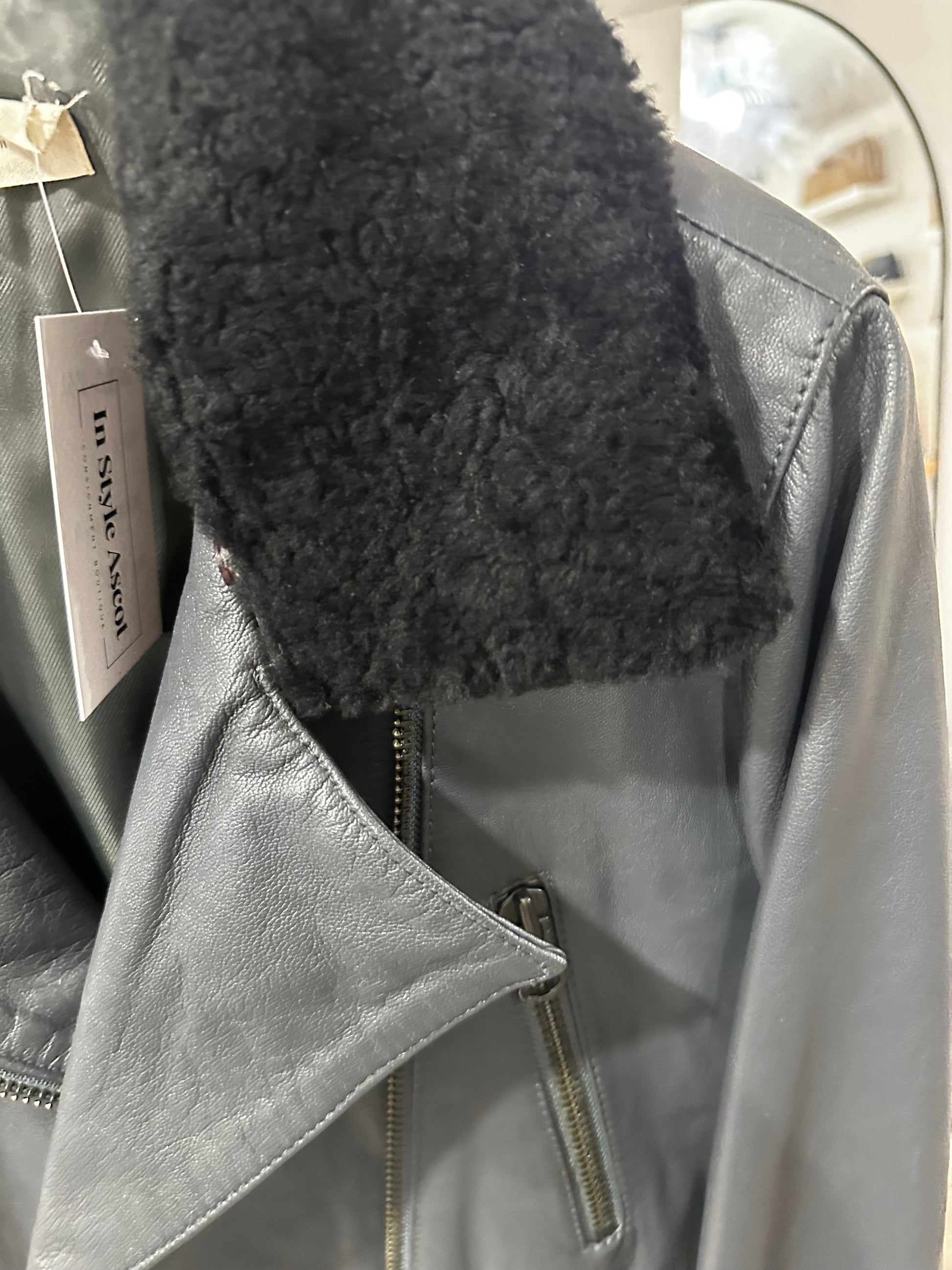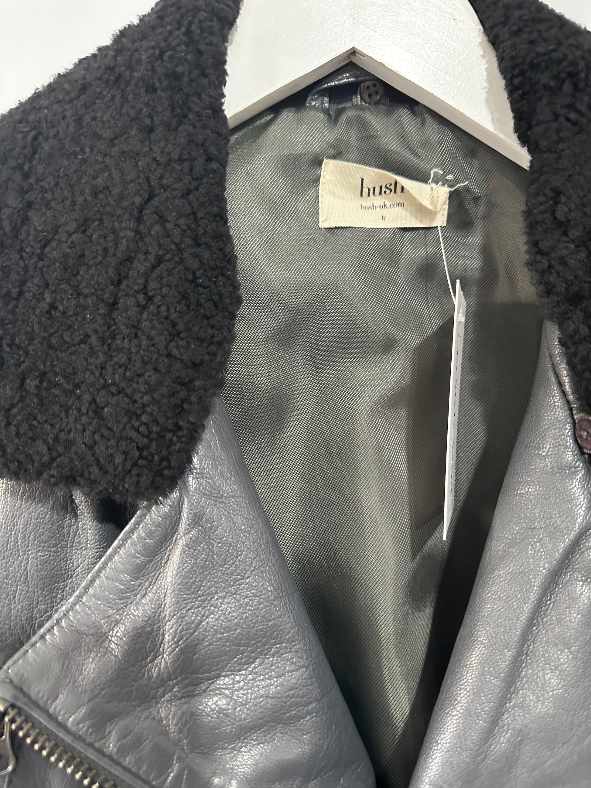 Shearling Collar Hush Leather Jacket, Size 8-10